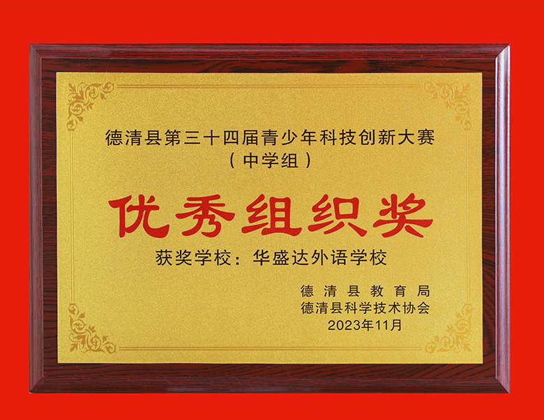 德清县第三十四届青少年科技创新大赛(中学组)优秀组织奖