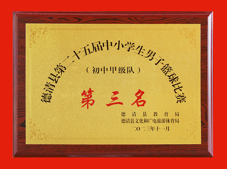 德清县第二十五届中小学生男子篮球比赛(初中甲级队)第三名