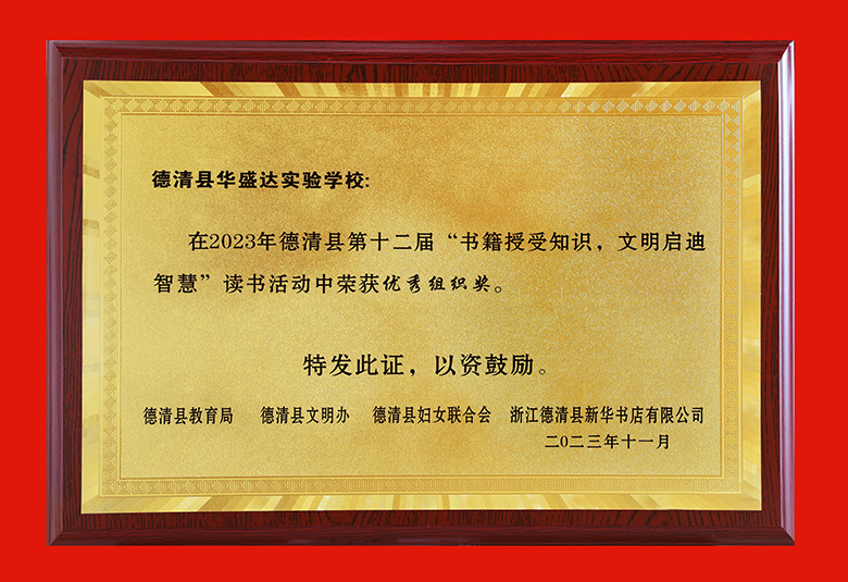 2023年德清县第十二届“书籍授受知识,文明启迪智慧”读书活动优秀组织奖