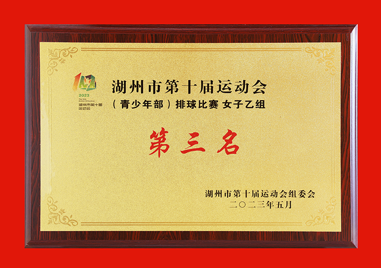 湖州市第十届运动会(青少年部)排球比赛女子乙组第三名